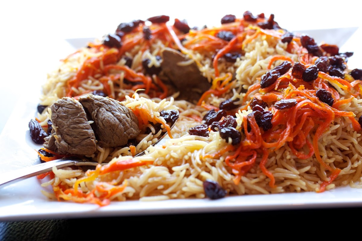 Bread served with beef suqaar, vegetables and soda or tea